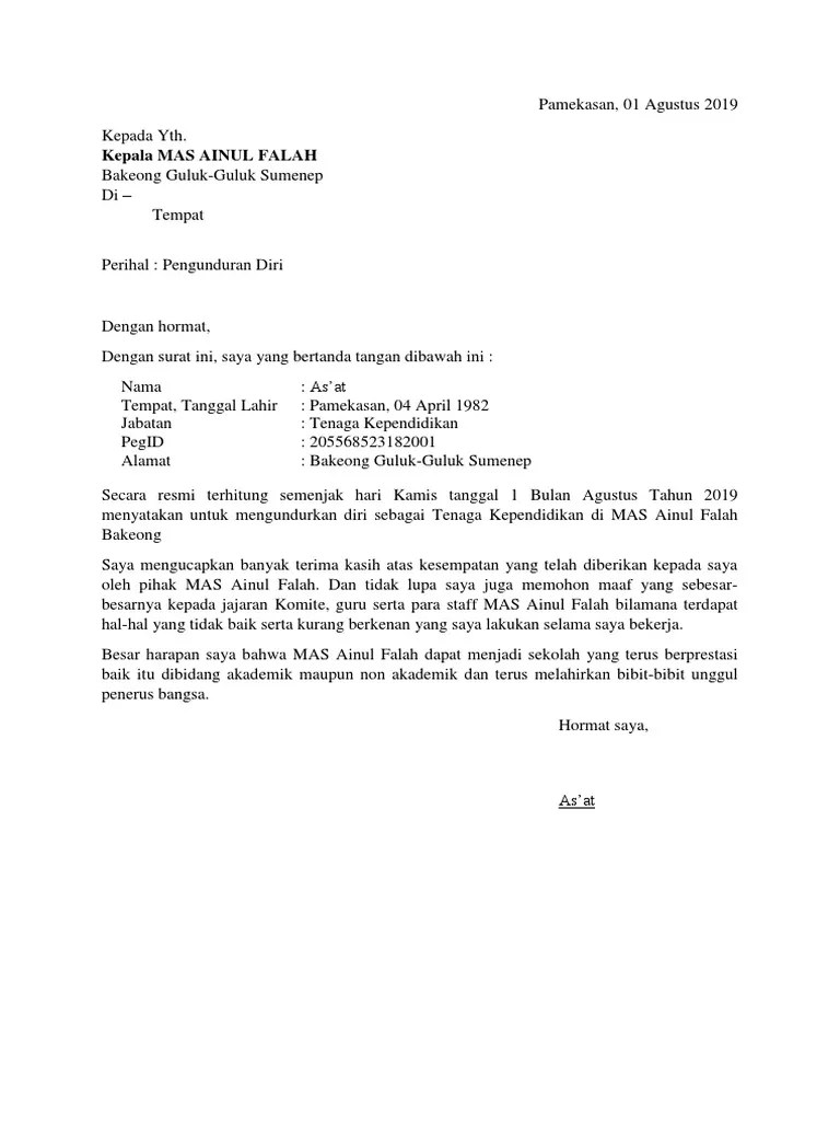 Sekolah Contoh Surat Pernyataan Diri / Surat Pernyataan Dari Kepala Sekolah - Contoh surat pengunduran diri dari sekolah.